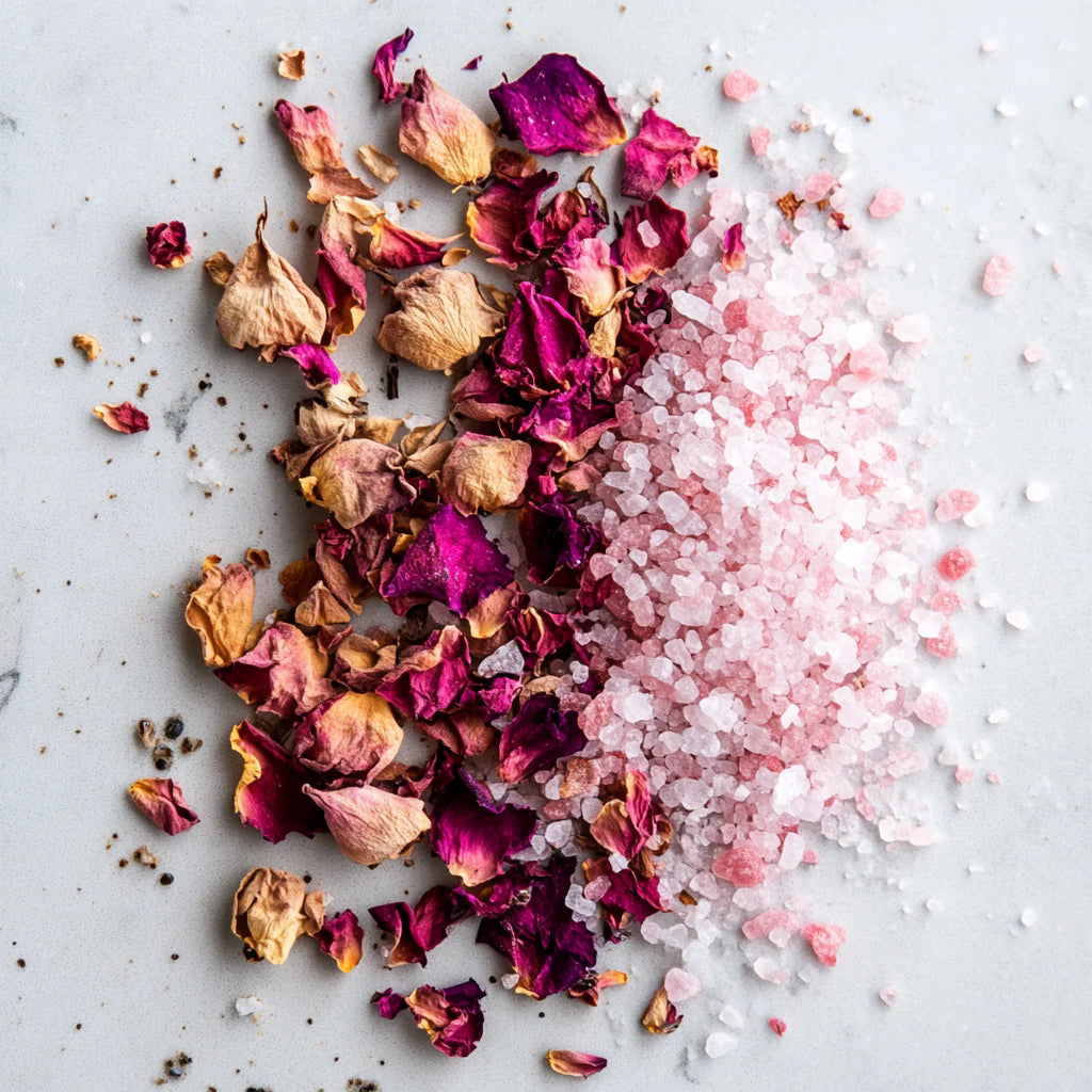Ingredients: Certified Authentic Dead Sea Salt, Epsom Salts (Magnesium Sulphate Crystals), Jojoba Oil, Fragrance & Essential Oils, Dried Rose Petals.