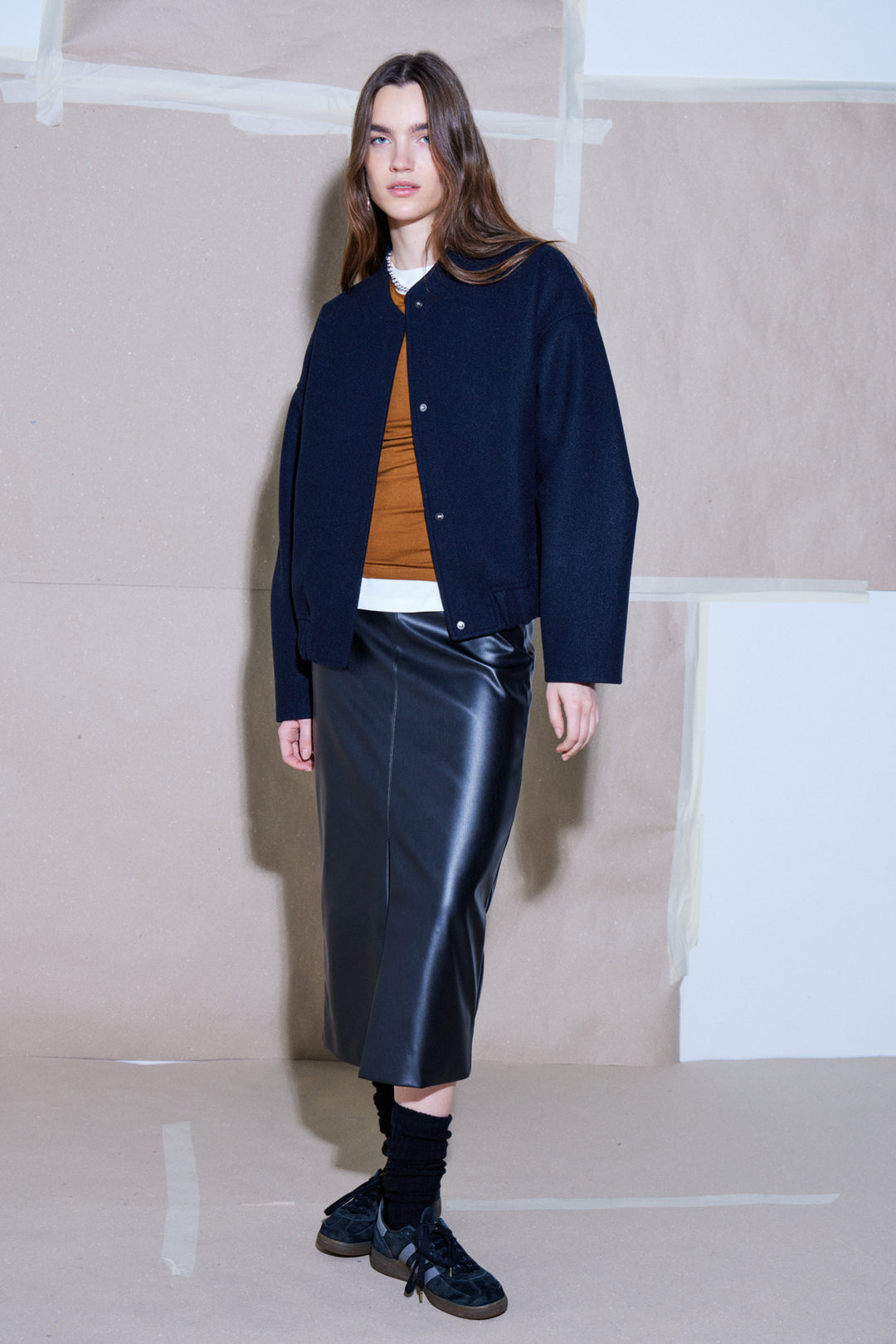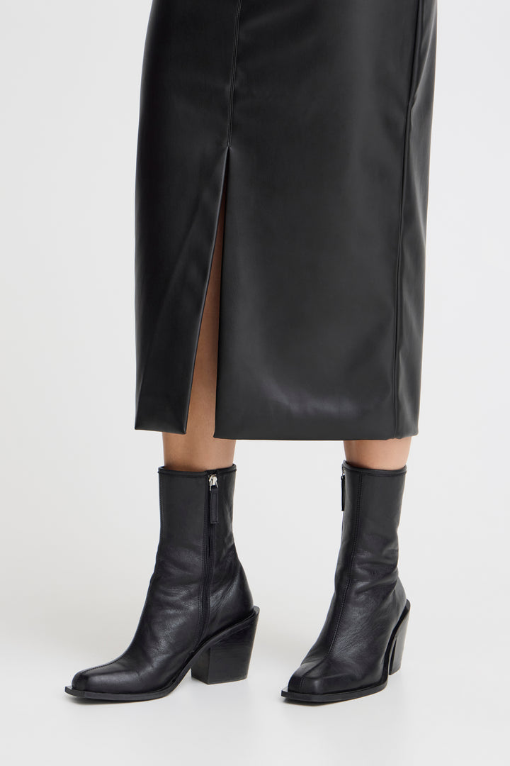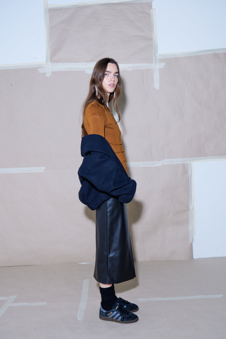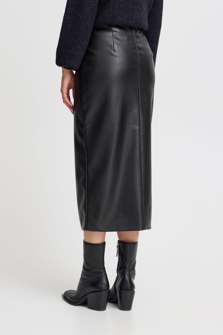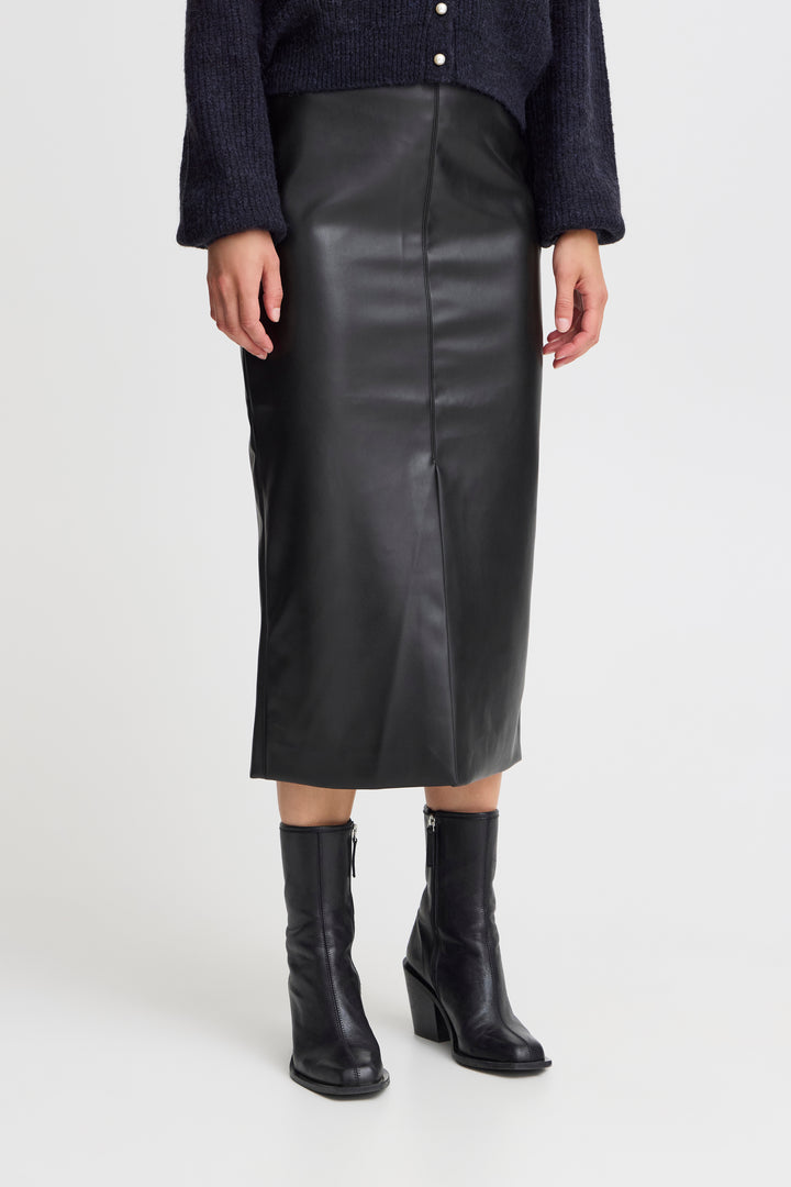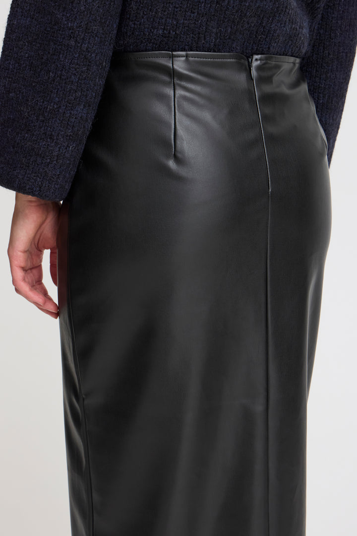 Rock that edgy look with our Comano Skirt. Made with faux leather, this black pencil skirt adds a touch of sleekness to any outfit. No animals were harmed in the making of this skirt, but you'll definitely slay in it.