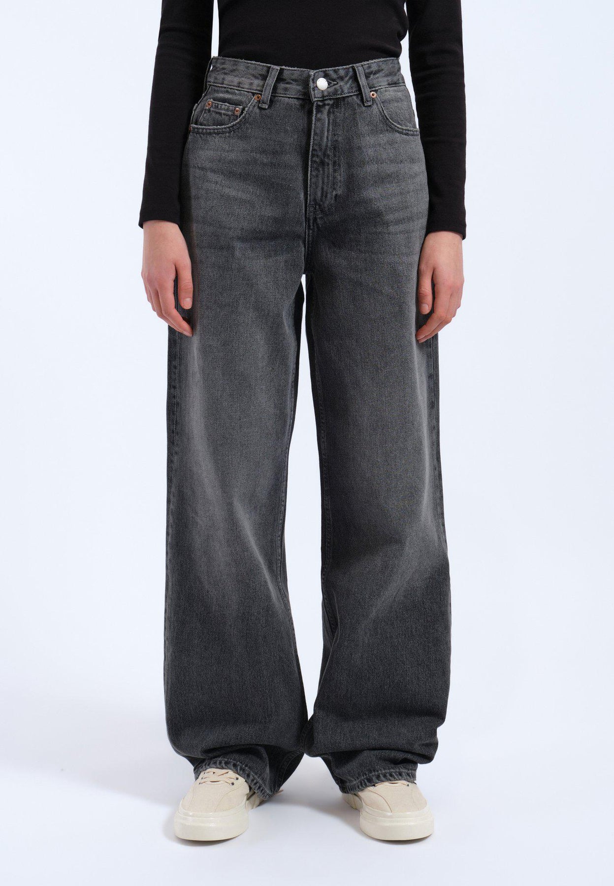 • Wide straight leg, slightly nipped in at hem