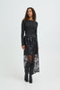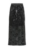 This long mesh skirt features an effortlessly straight silhouette with intricate all-over sequin floral embroidery and a sheer lower panel. An elastic waistband and layered design elevate its modern edge and cool appeal.