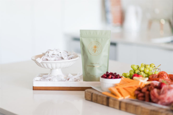 These caramels are full of flavour of green cardamom, clove, ginger, pepper and cinnamon. It’s like a warm hug in caramel form!
