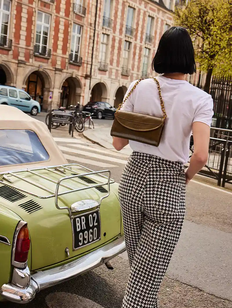 This new rectangular mesh metal strap in gold will give any of your bags or phone cases a sharp look!