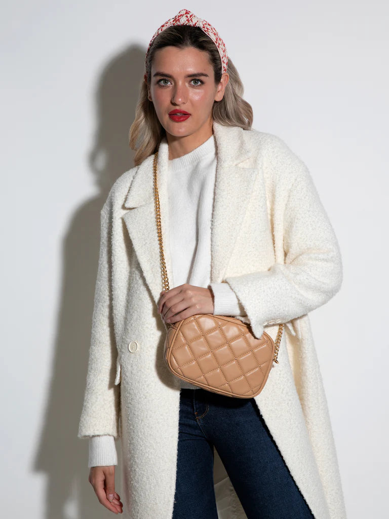 • Made from quilted PU with gold hardware