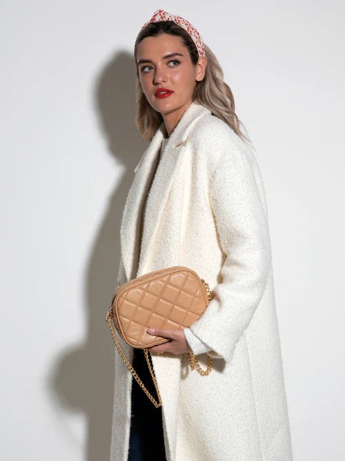 Say “Bonjour!” to your new favorite handbag, Shiraleah’s Mademoiselle Camera Bag. Made from trendy quilted PU in a classic black color, the sturdy gold cross-body chain allows you to style it as a chic clutch or an over-the-shoulder purse. Large enough to carry a small camera, this petite rectangular bag is the perfect size for all your essentials on a night out on the town.