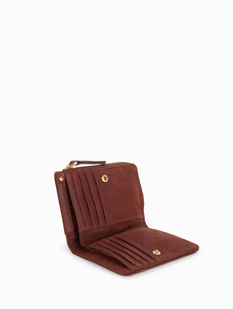 - Front compartment, snap closure, with bill compartment, patch pockets and 8 card slots
