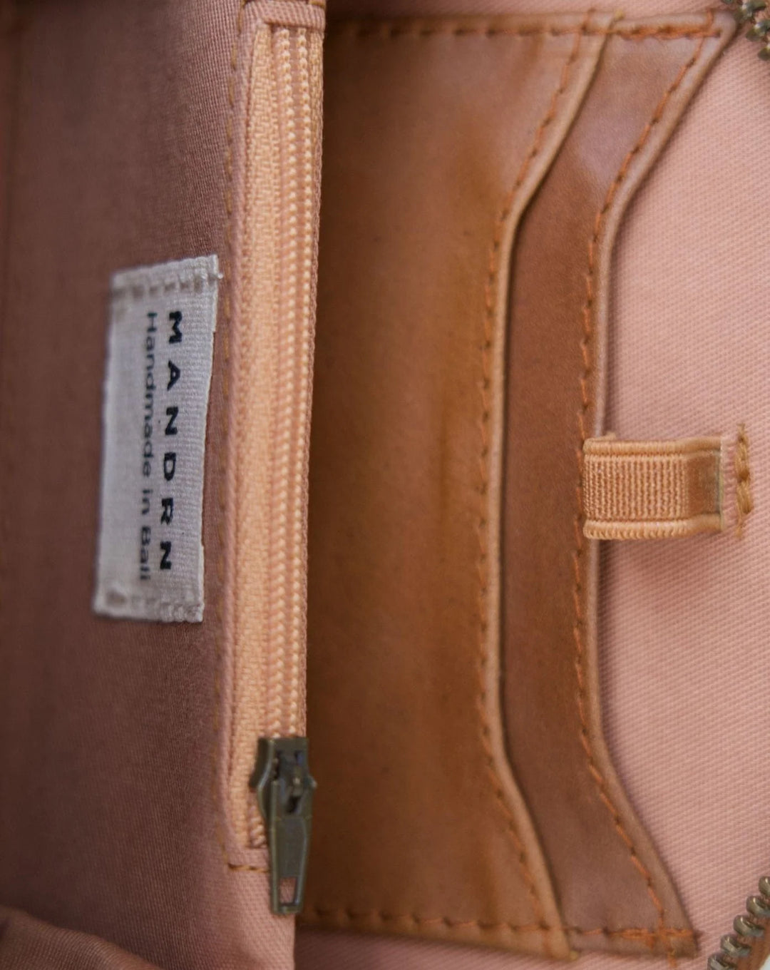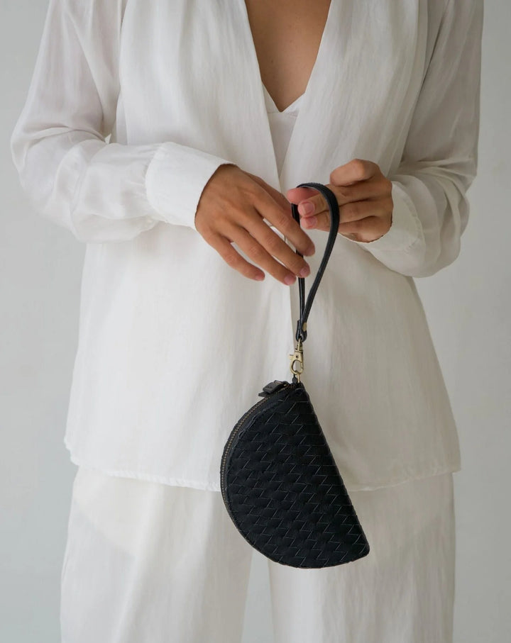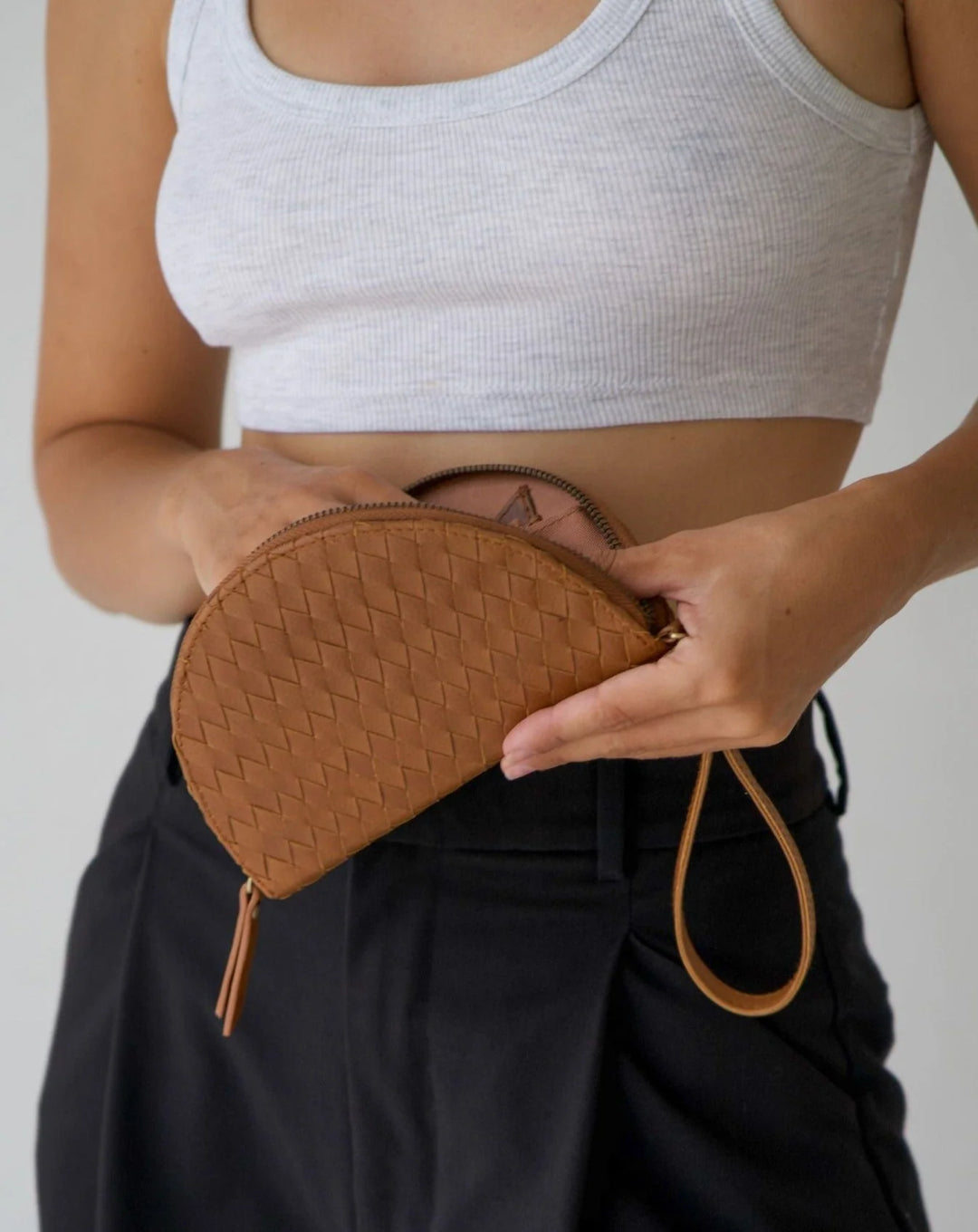 Designed with multi-functional minimalism in mind, the Woven Wedge Wallet can be worn as a clutch or used as an organization-booster that slots inside any MANDRN fanny pack. Slide in your cards, cash, lipstick and whatever else you need to keep close – she’ll handle it all.