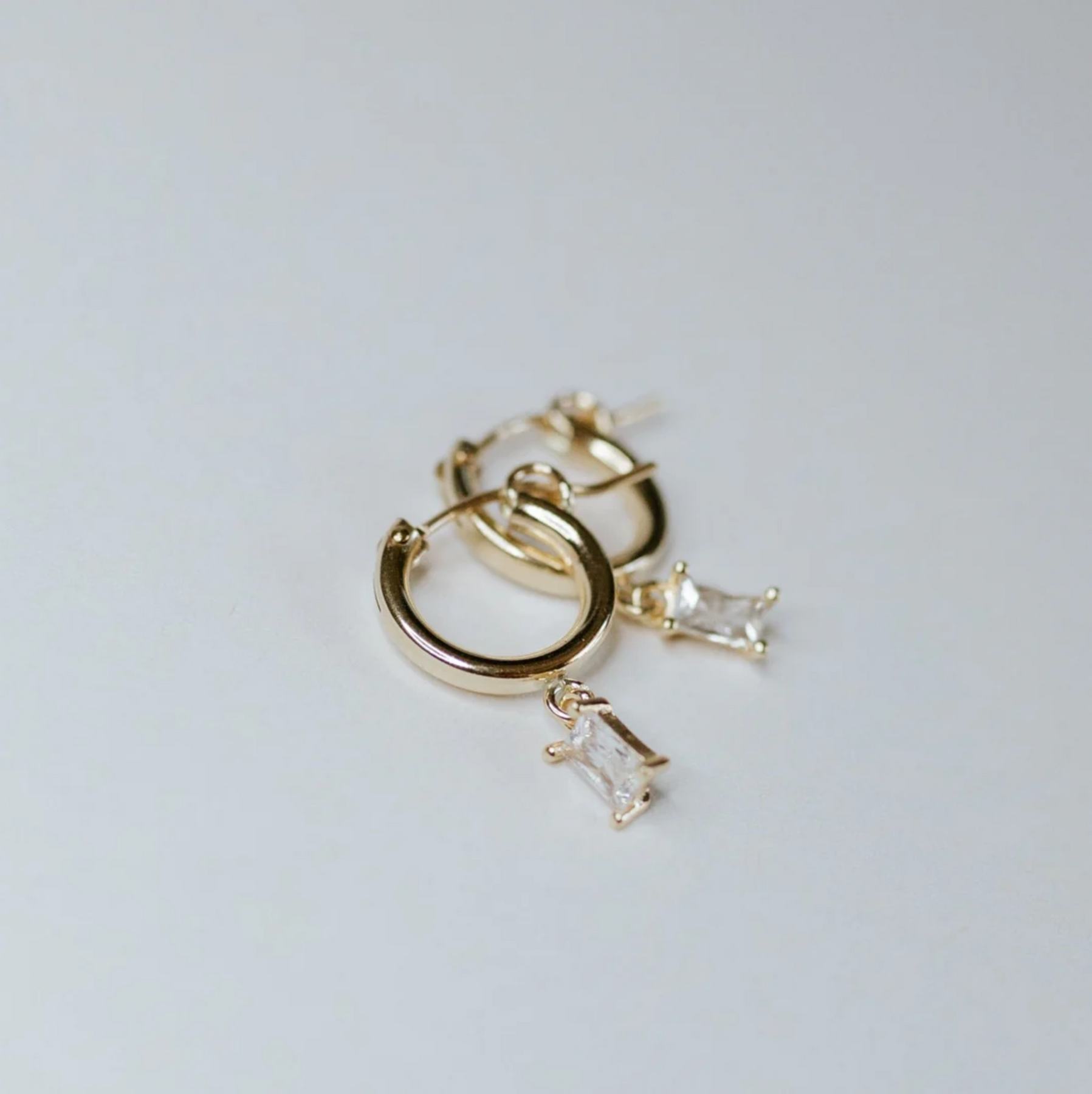 14kt gold filled hinged hoops 13mm featuring CZ baquette drop charms