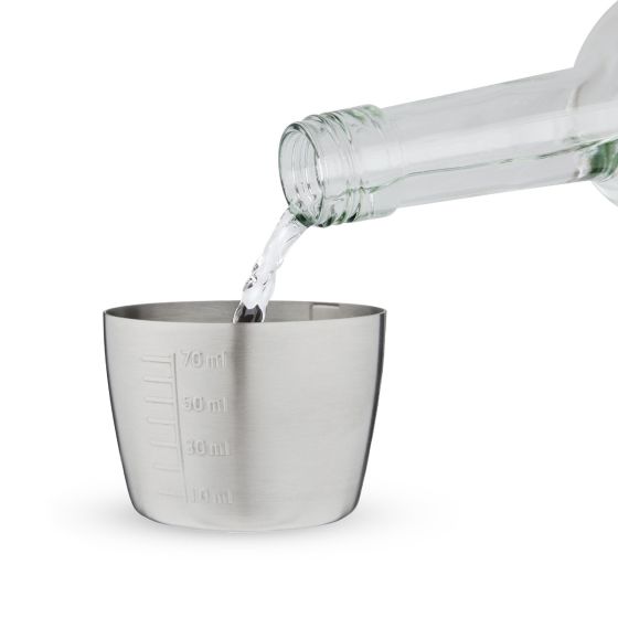 Skip the extensive list of bar tools — this multipurpose cocktail shaker includes everything you need to make great drinks at home. This cobbler shaker has a built-in jigger, strainer/citrus reamer, and tumbler base that functions as a shaker or cooling cup.