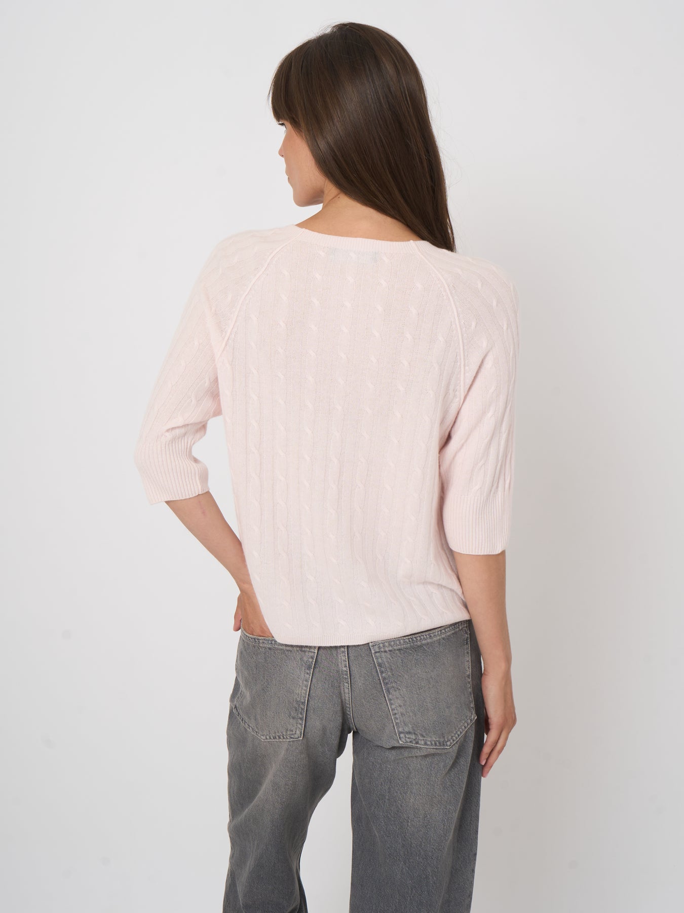 Wrap yourself in pure luxury with this cashmere cable-knit quarter button-up sweater. The three-quarter length sleeves strike the perfect balance between cozy and chic, while the intricate cable knit pattern adds timeless texture and visual interest. Crafted from premium cashmere, it's buttery soft against your skin and naturally temperature-regulating. Whether you're layering over a crisp white tee or wearing solo, this versatile piece elevates any wardrobe with effortless sophistication and comfort that feels like a warm hug.