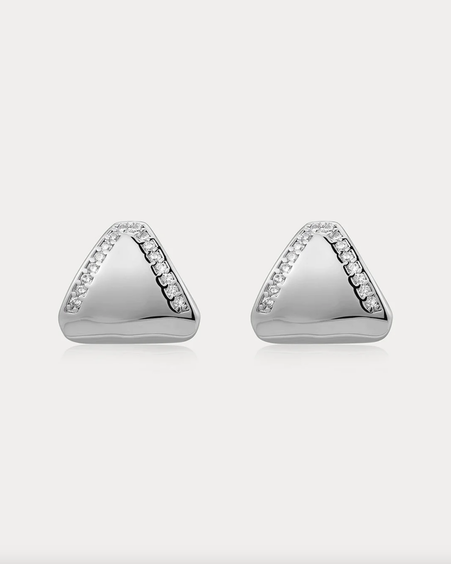 • Pair of shield-shaped earrings encrusted with tiny pavé-set stones