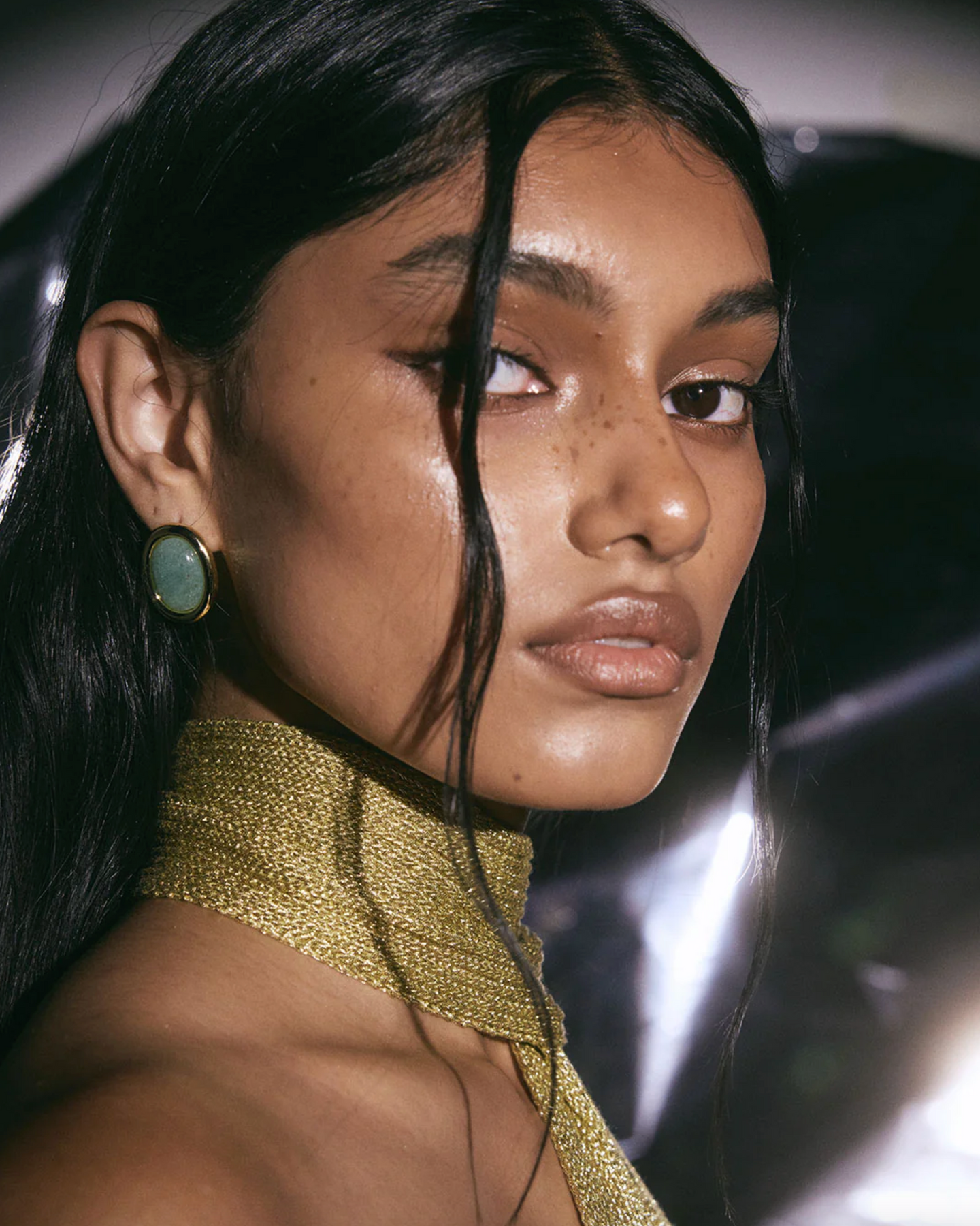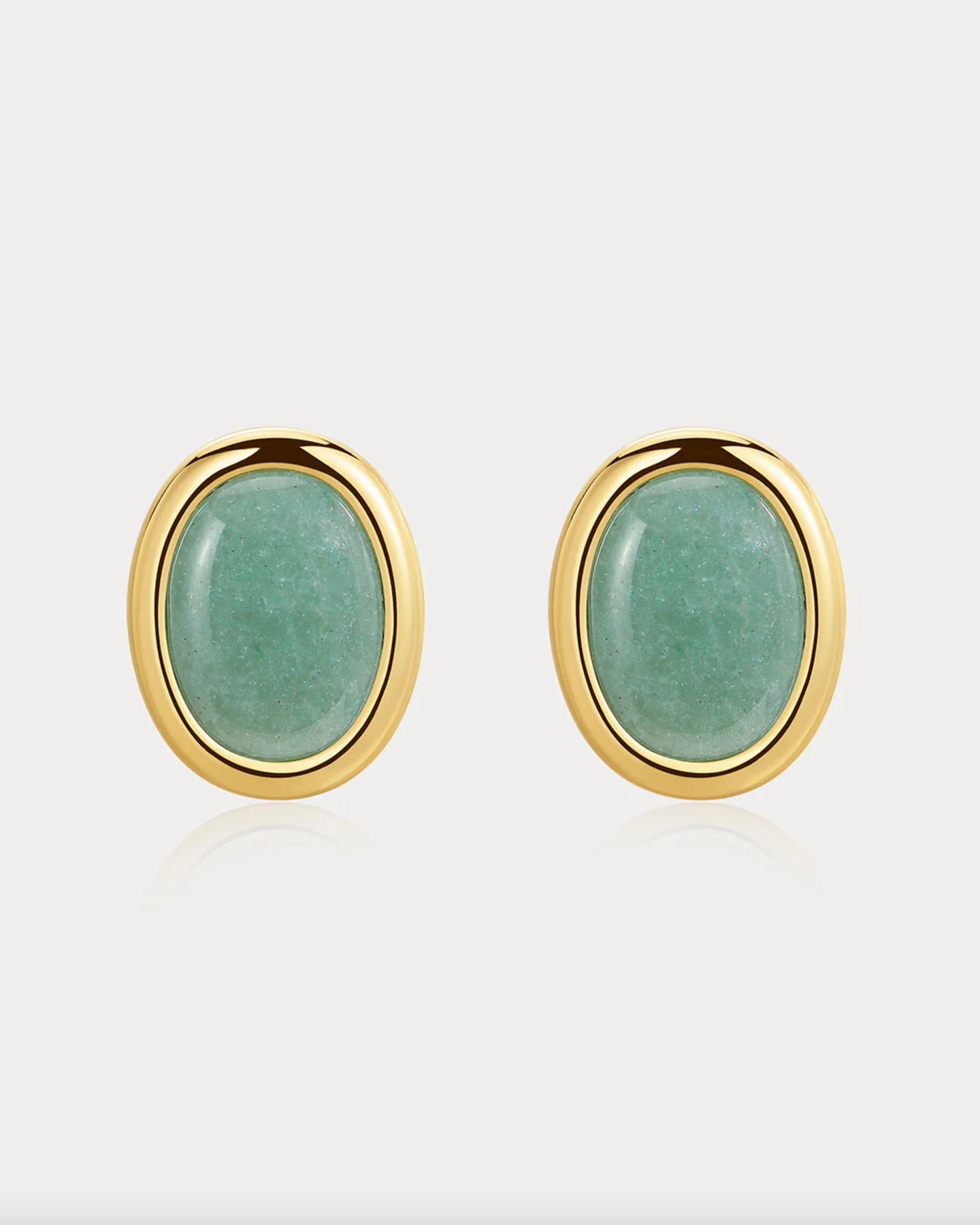 - Pair of statement studs featuring an oval-shaped Natural Jade center stone