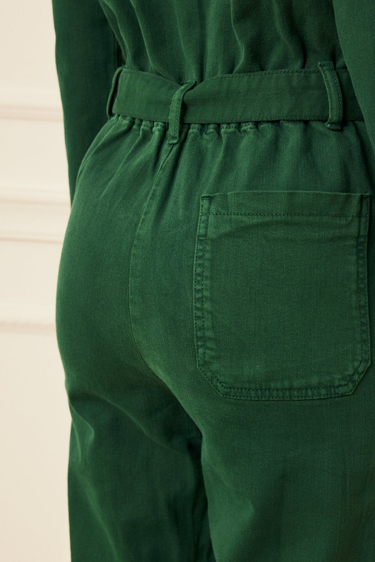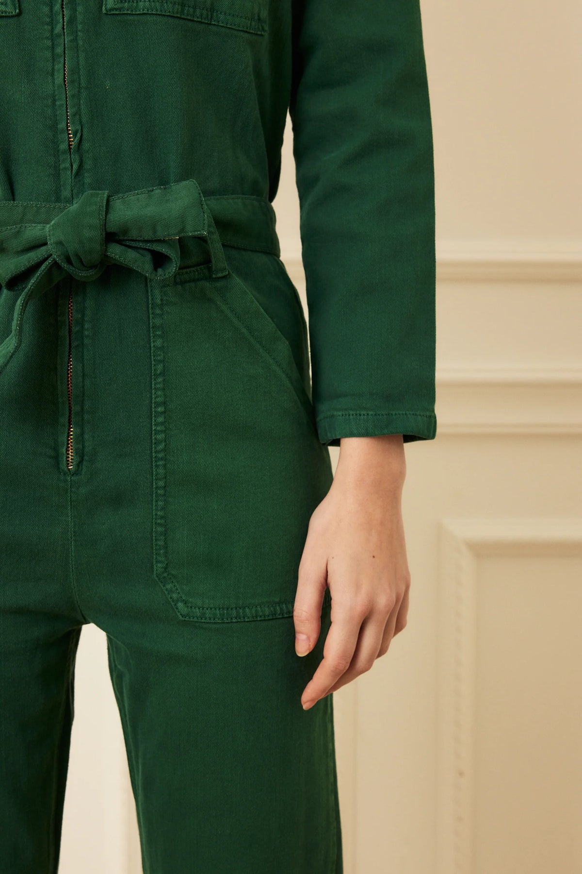 Step into effortless style with the Celia Jumpsuit—a playful twist on classic denim. Featuring a zip-front closure for easy wear, handy pockets on the front and chest, plus a tie at the waist to cinch your look just right. Perfect for days when you want comfort and charm in one chic outfit.
