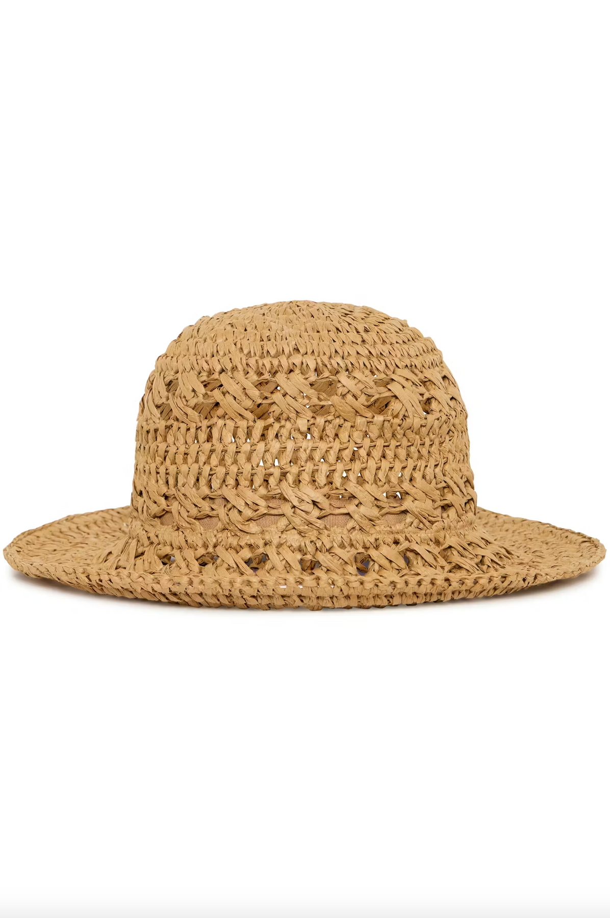 This woven straw bucket hat features an openwork texture and structured shape. Its wide brim and distinctive woven pattern deliver a relaxed, modern edge to any look.