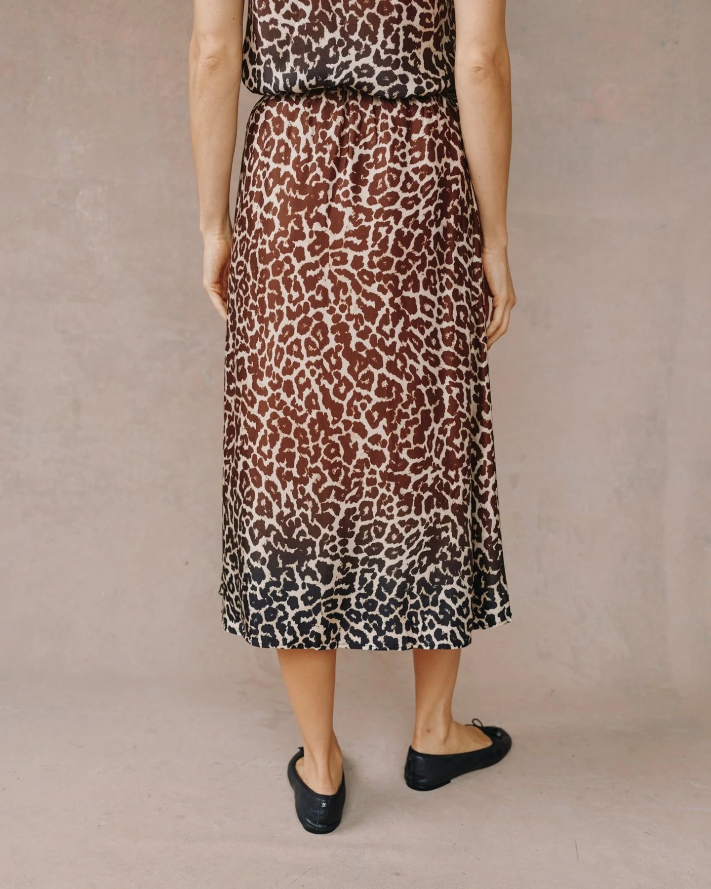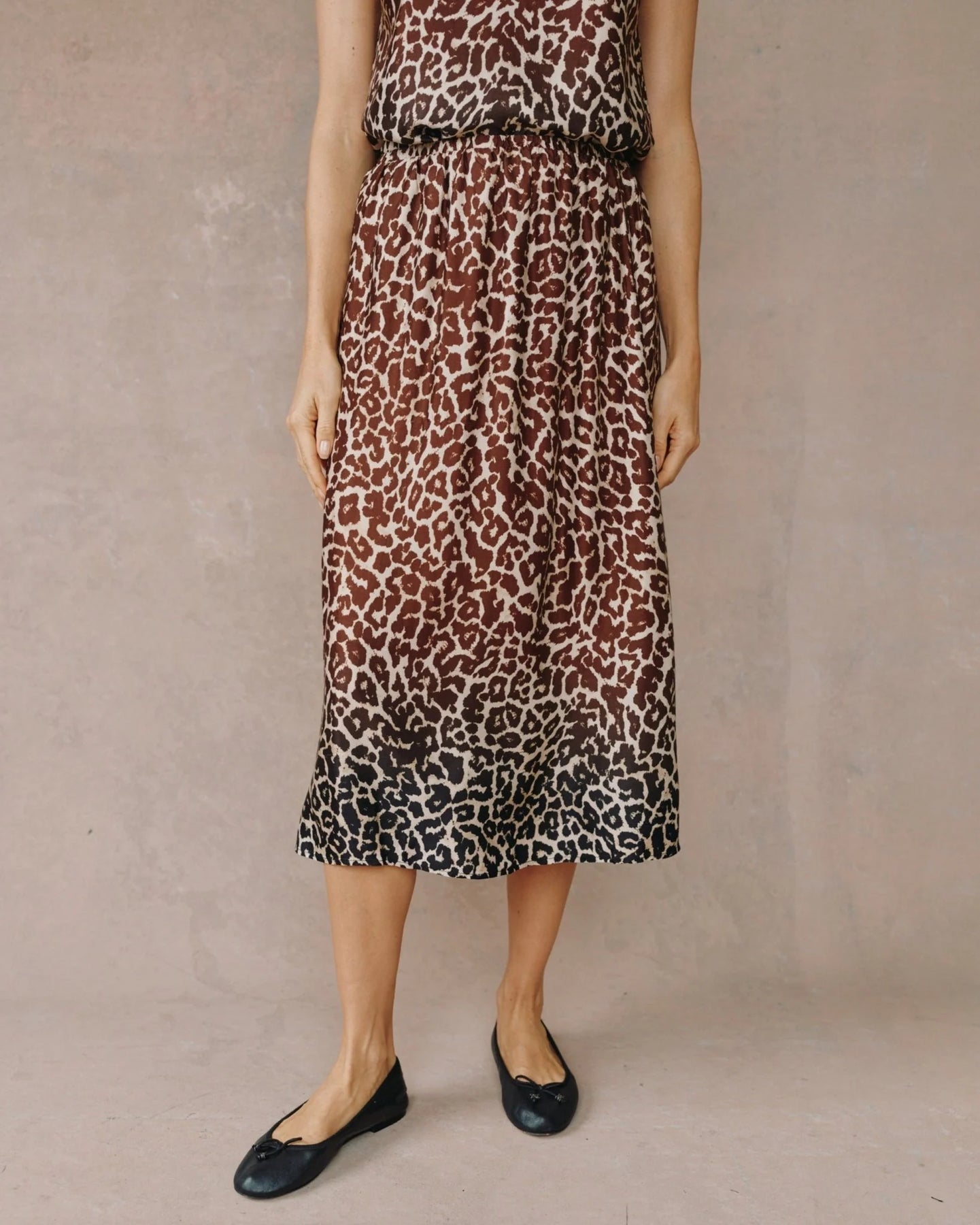 Elegant and effortless, the Gathered Skirt in Ombre Leopard Print is a versatile piece that moves gracefully with every step.