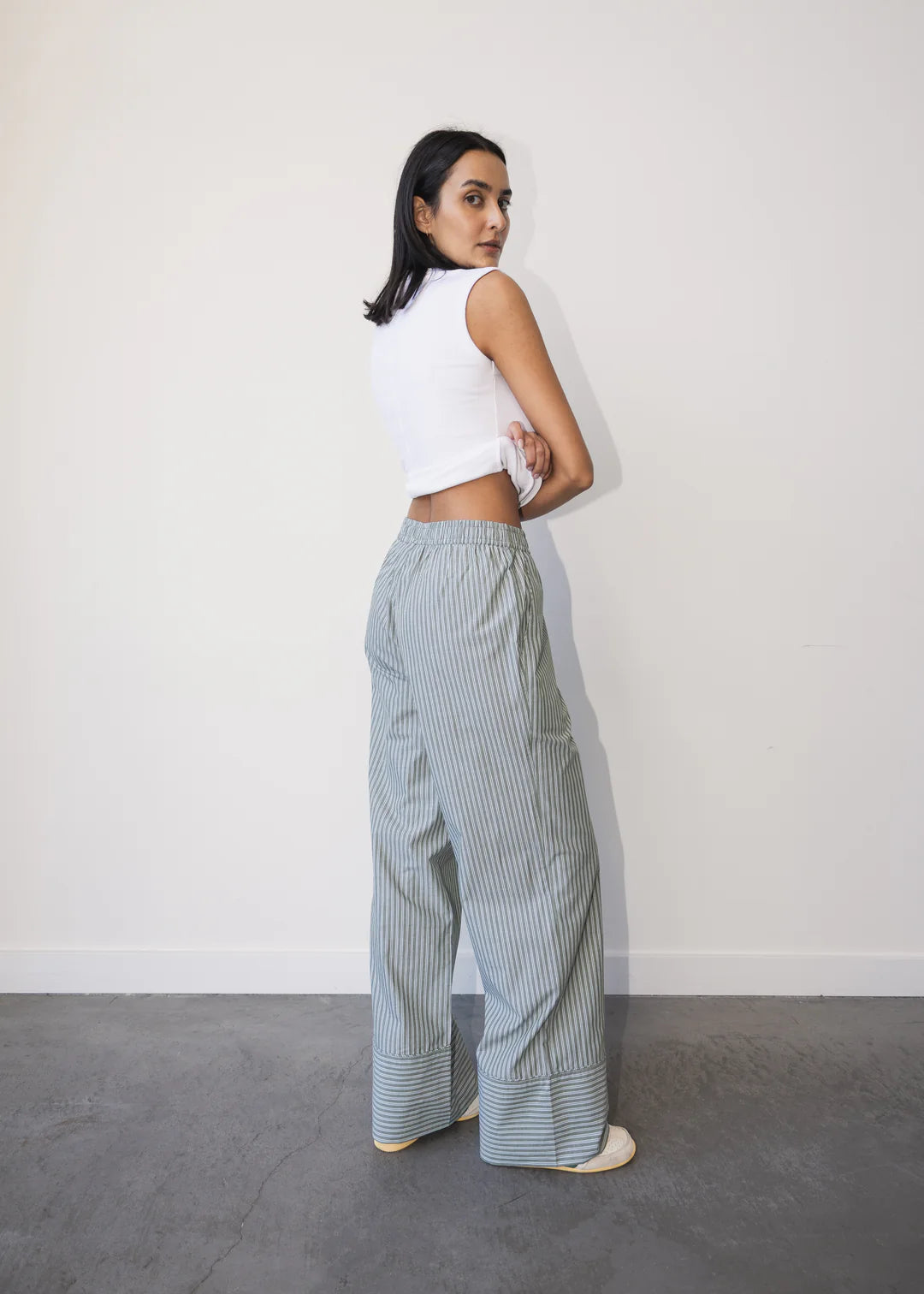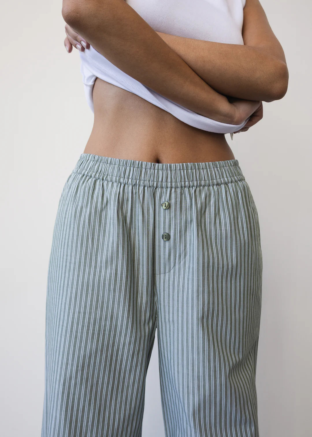 Stripes are here to stay and so are your cool PJs. The Nyah Pant is the ultimate in casual comfort. Made in 100% cotton with a wide but straight leg with a pull-on waistband, it’s designed for ease without compromising the style. Pairs perfectly with the Sofie Shirt or a classic tee.