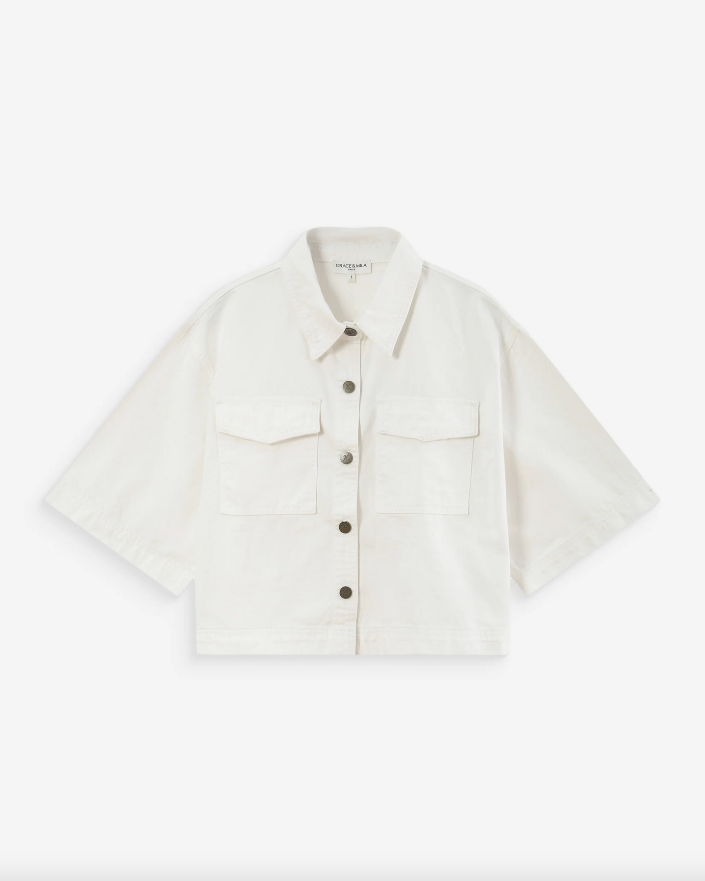 Crafted from fluid denim fabric, the VITA oversized shirt creates a relaxed silhouette. This denim piece features a button placket at the front and an exclusive 'Grace' embroidery on the back. The VITA denim shirt has wide sleeves and an oversized fit that emphasizes the edgy style of the design.