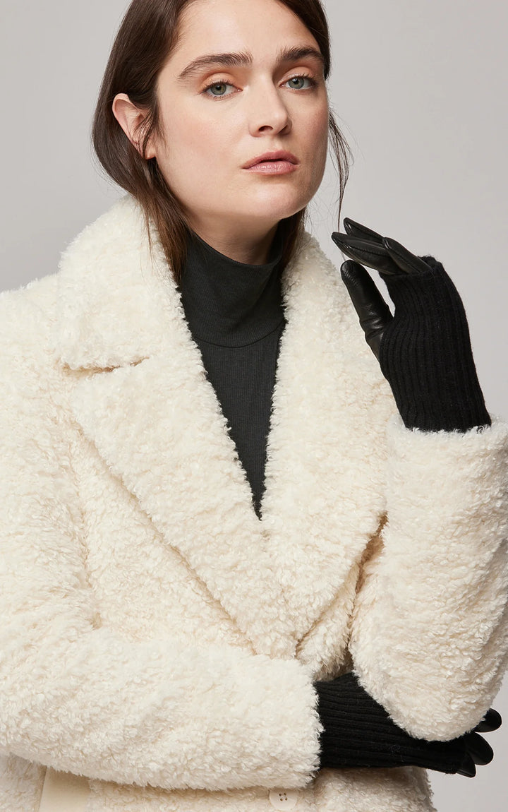 Experience pure cold-weather elegance with CARMEL-N gloves by SOIA & KYO. Made from exquisite lambskin, the short outer glove naturally protects hands from the elements. Nestled inside is an extra-long rib-knit glove, delivering warmth, softness and an added layer of luxury. Tech-friendly fingertips.
