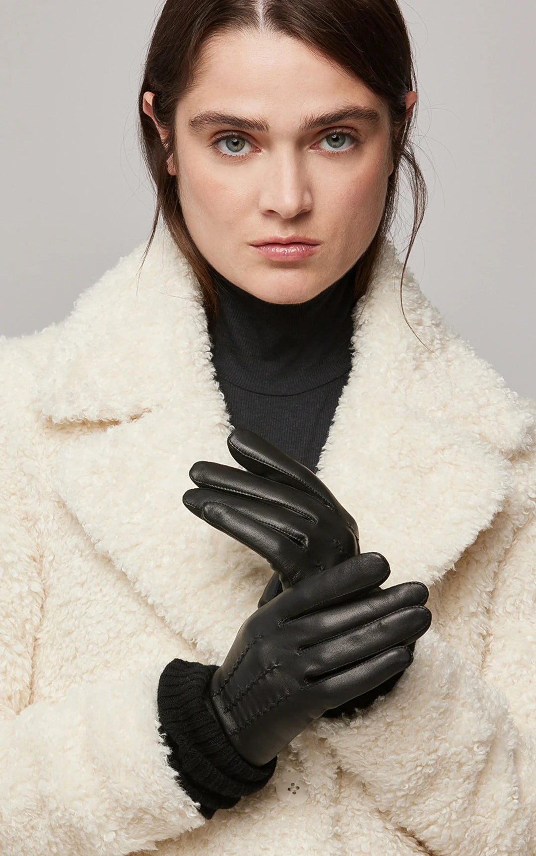 - Short leather glove with long rib-knit inner glove