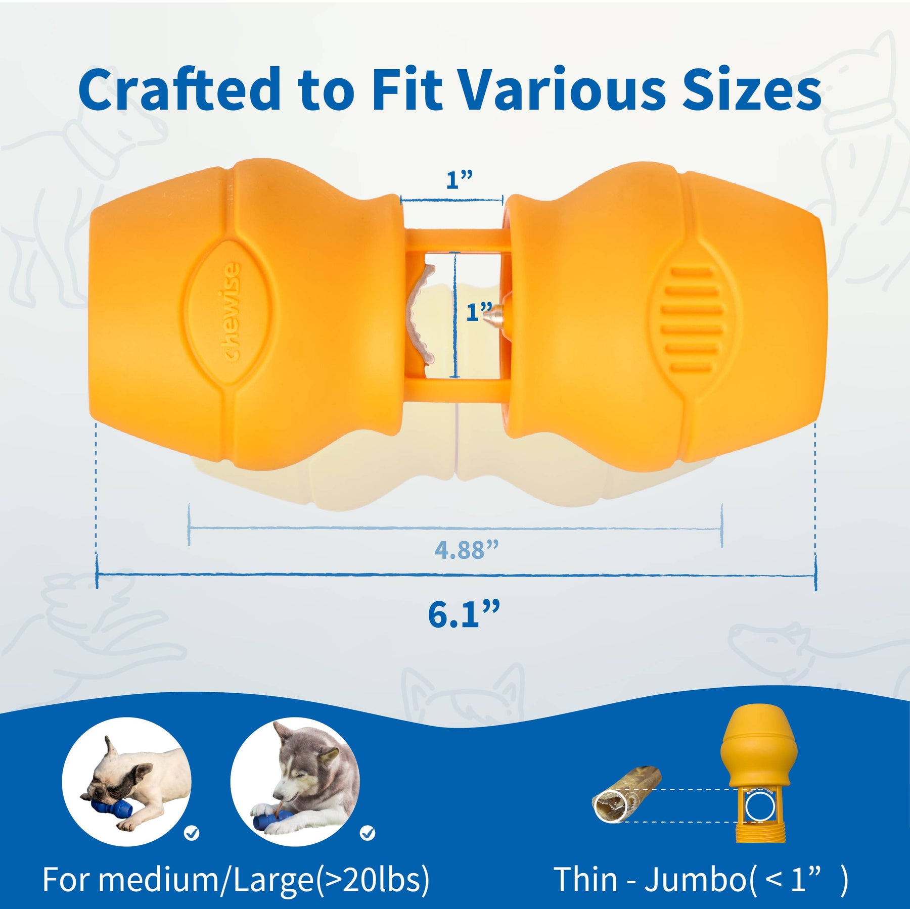 Universal Compatibility: Recommended for dogs 20~70lbs and adaptable to various bully stick sizes, the Chewise Bully Stick Holder offers unmatched versatility, ensuring a perfect fit for different dog sizes and chew preferences, simplifying your pet care routine.