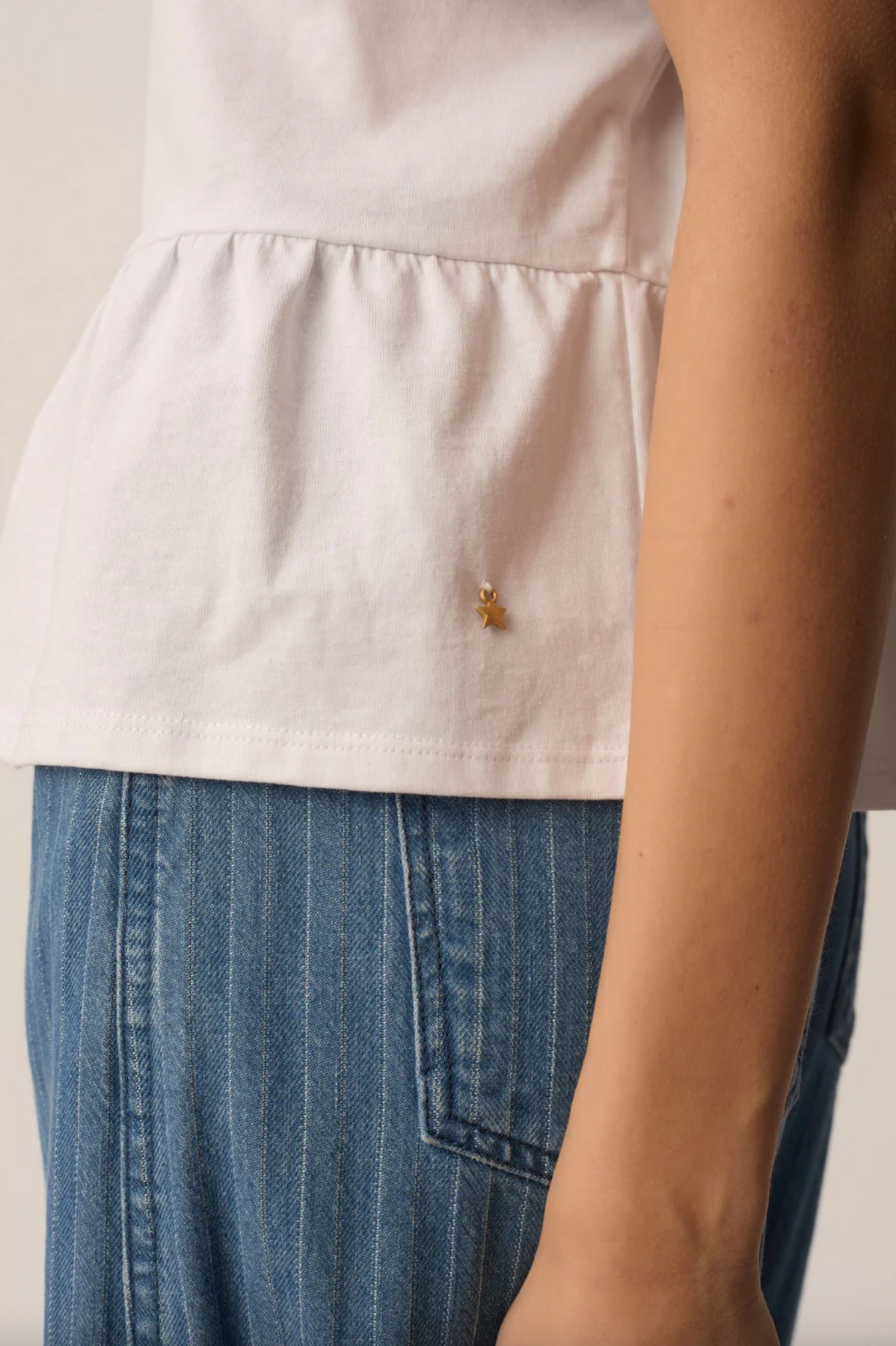 With its urban cut and refined details, the Jessica oversized t-shirt embraces graphic and airy volume for summer. Made from fluid jersey, its wide ruffles create a contemporary silhouette that you'll want to make your own right away.