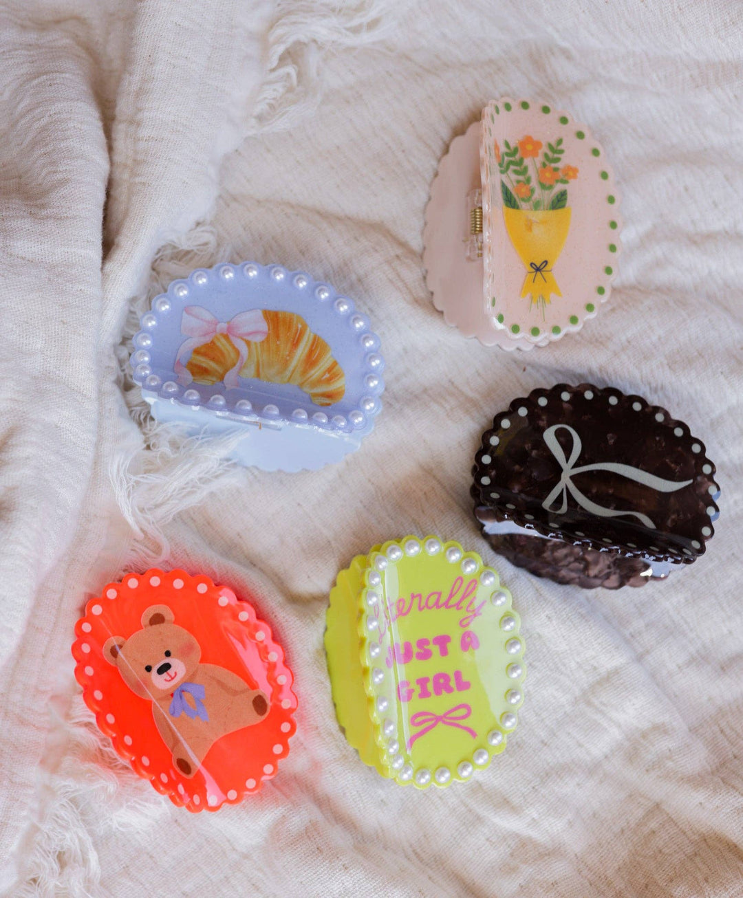 Metal Enamel Cloud & Bow Bobby Pins 8pc Set