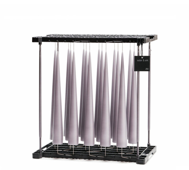 Originally, our cone candles were produced as a decorative Christmas candle for festive wreaths and decorations. However, the cone candle soon went on to become a popular interior product, which is now sold all year round. The cone candle is self-standing, making it a very versatile product. With its classic shape, it is elegant on its own, but it also sits beautifully on our candle plate or many other surfaces, for example a piece of glass, a raw cement table or a piece of marble – anything is possible, because no candle holder is required. Our online range includes cone candles in two different heights, making it possible to vary the height to suit individual tastes.