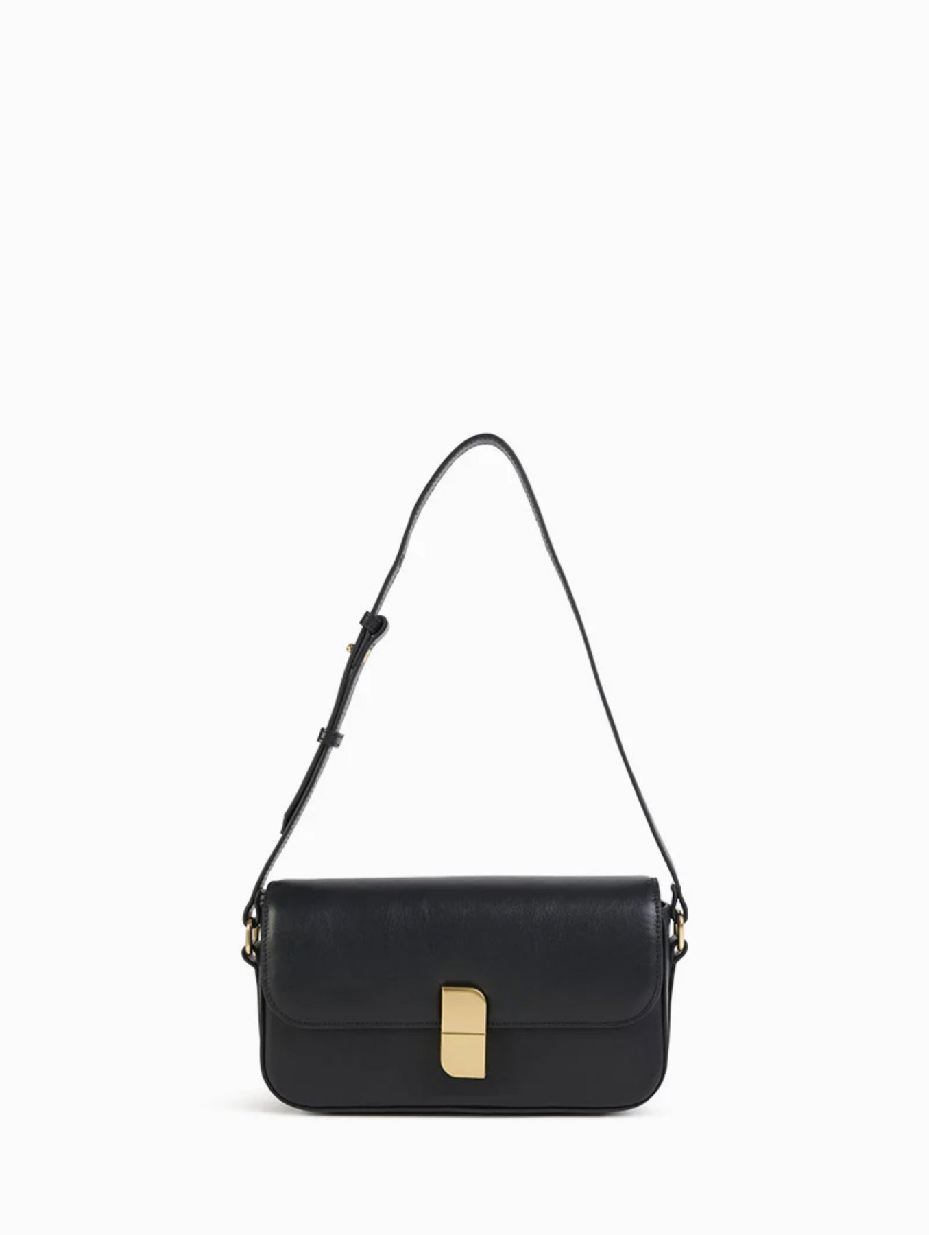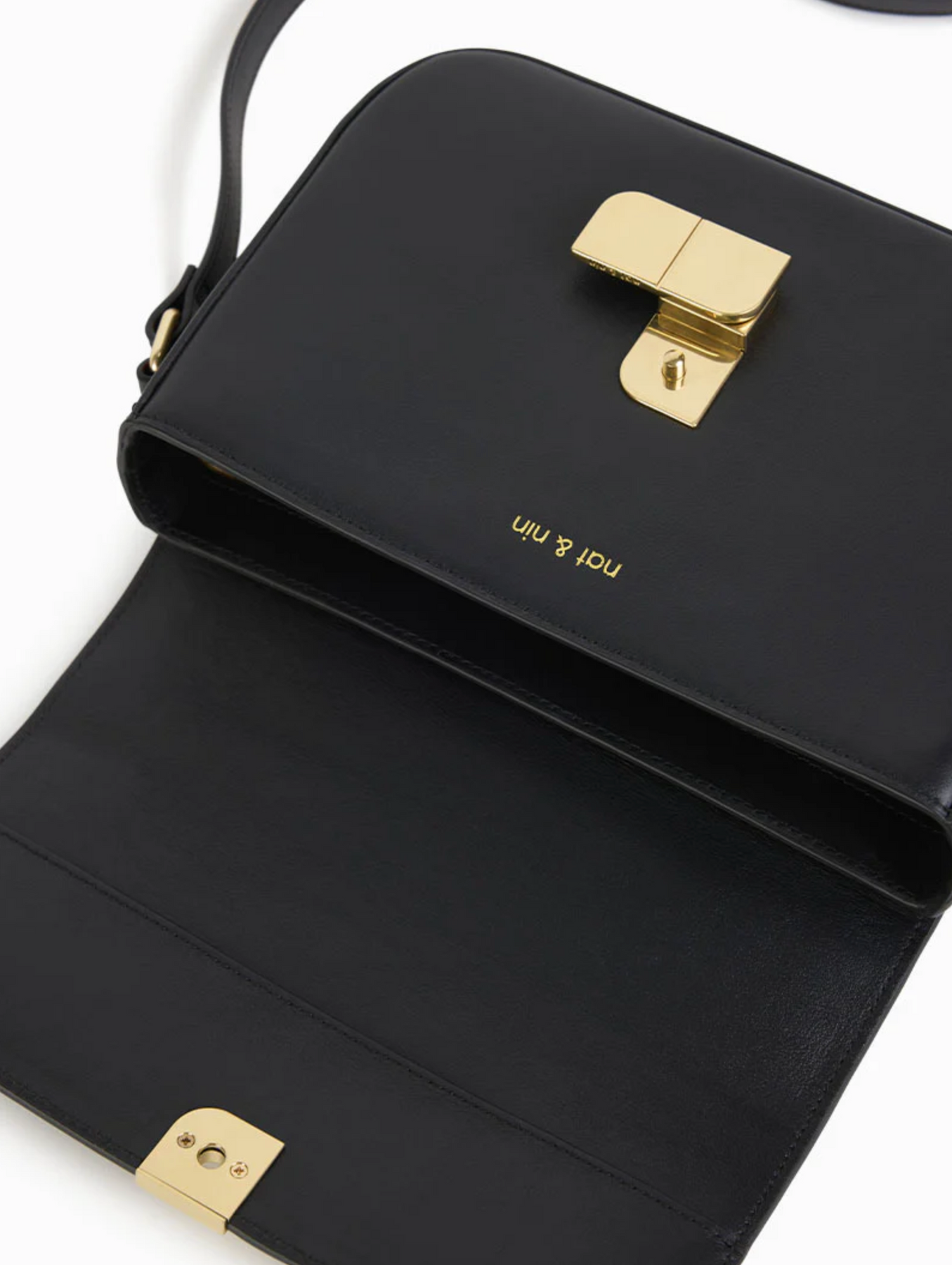 Alice Small is a compact and functional baguette bag. With its rectangular shape and sleek design, it can be worn on the shoulder or across the body thanks to a leather handle that can be adjusted with collar buttons. Its signature nat & nin clasp adds a contemporary and distinguished touch.