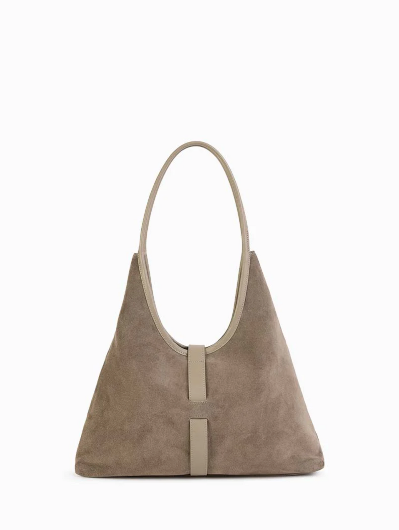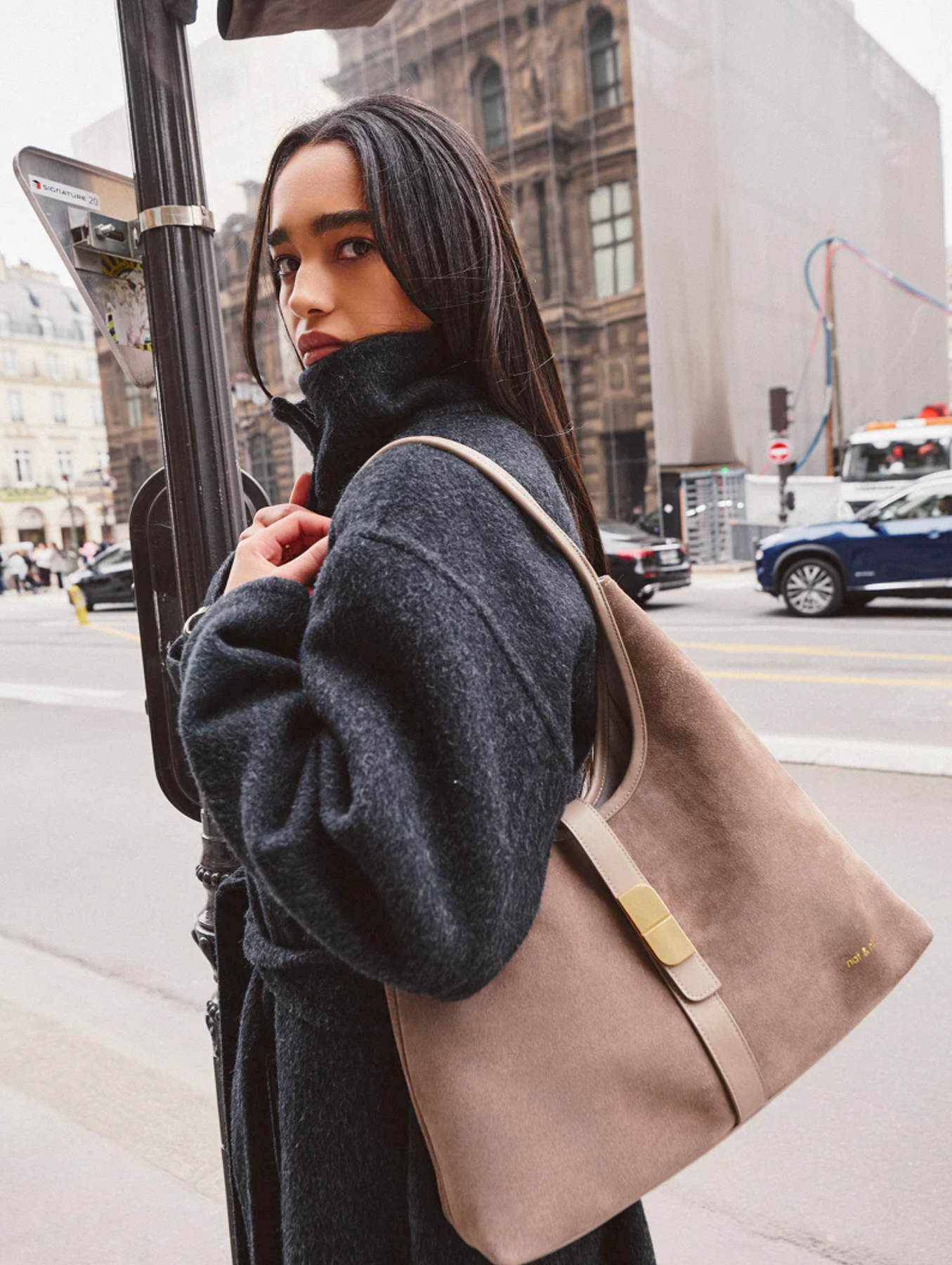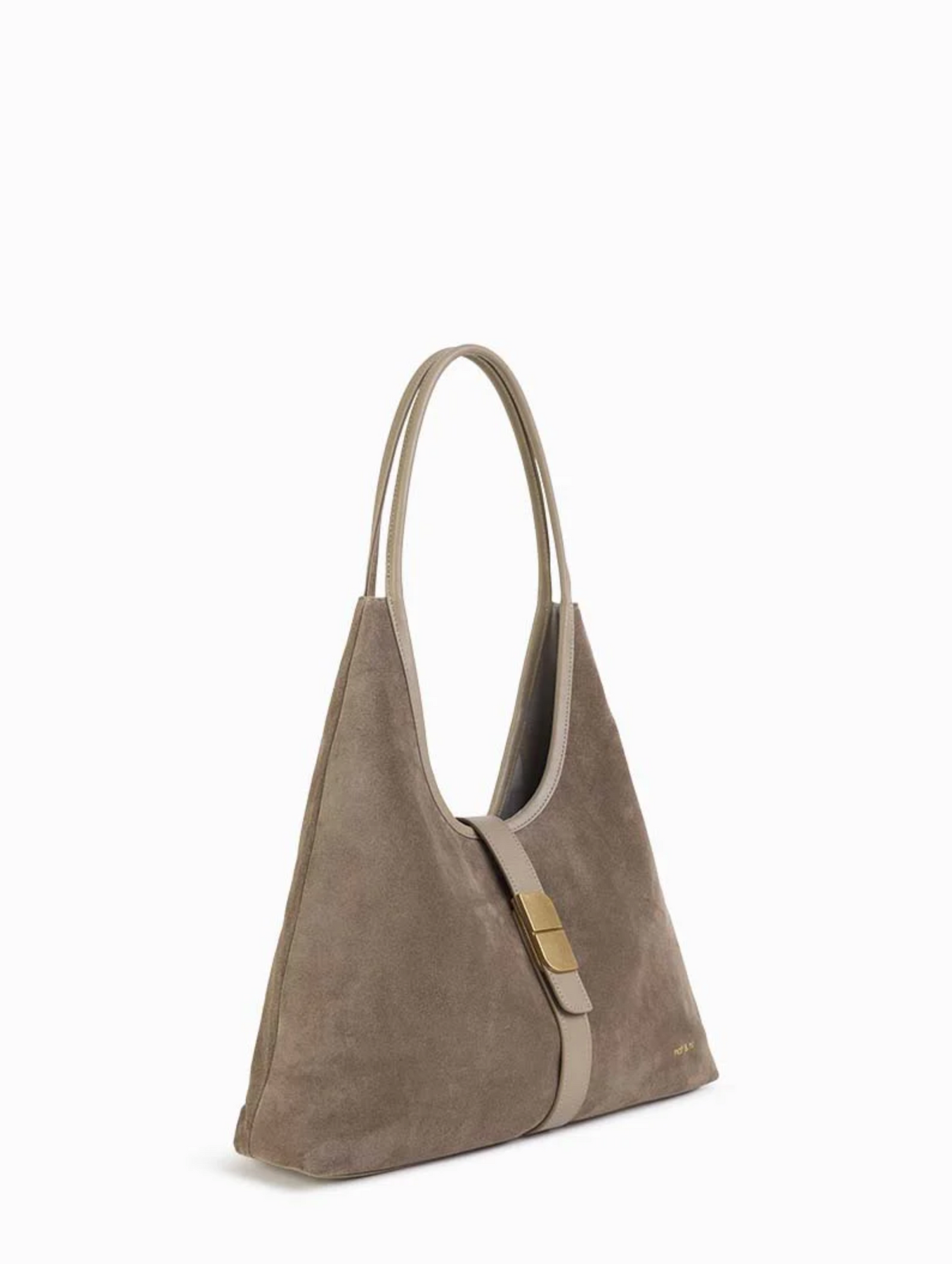 Discover the Roméo hobo bag in suede leather, combining softness and elegance. Its clasp adorned with a refined logo adds a sophisticated touch, perfect for enhancing any outfit. Practical and chic, this bag is the ideal accessory to accompany you in style every day.