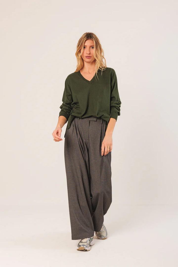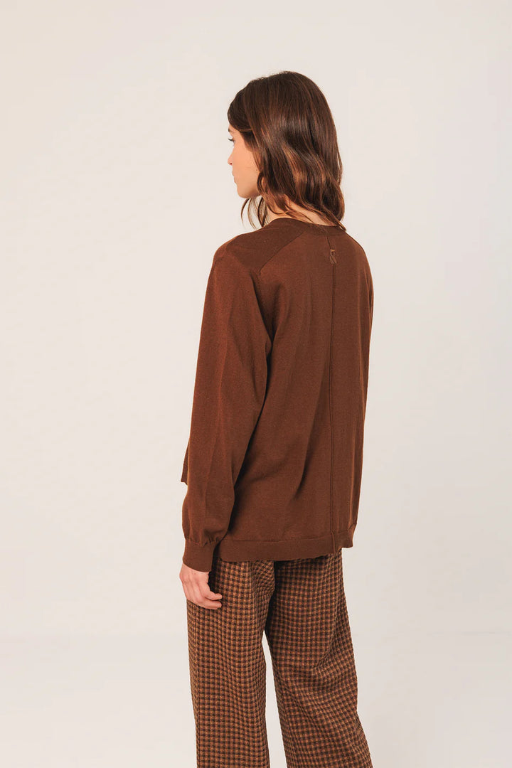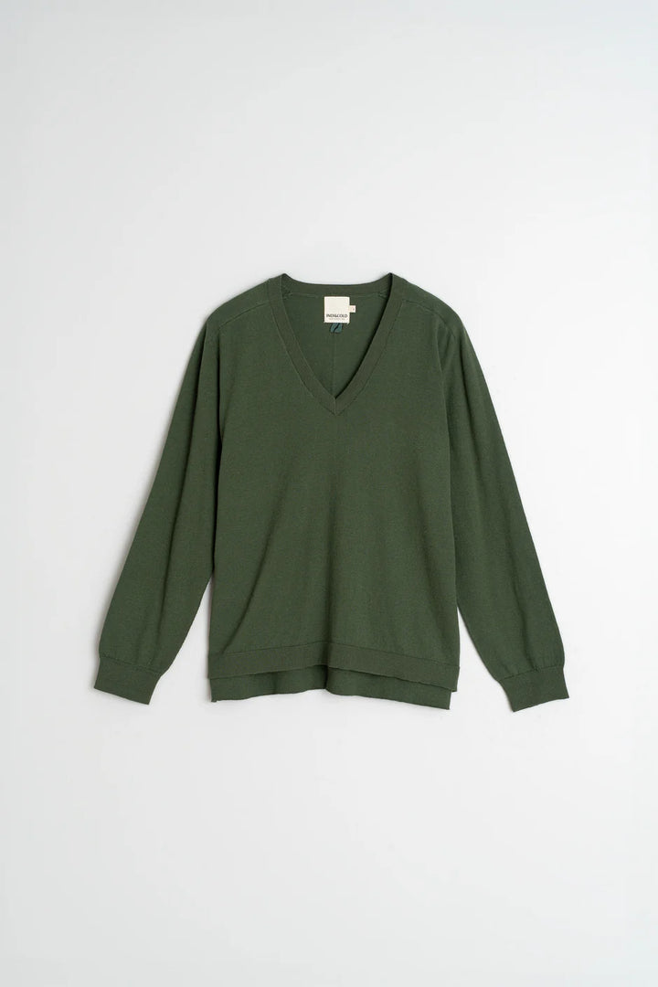 A basic sweater in fine organic cotton, with a V-neckline and long sleeves. Embroidered logo details.