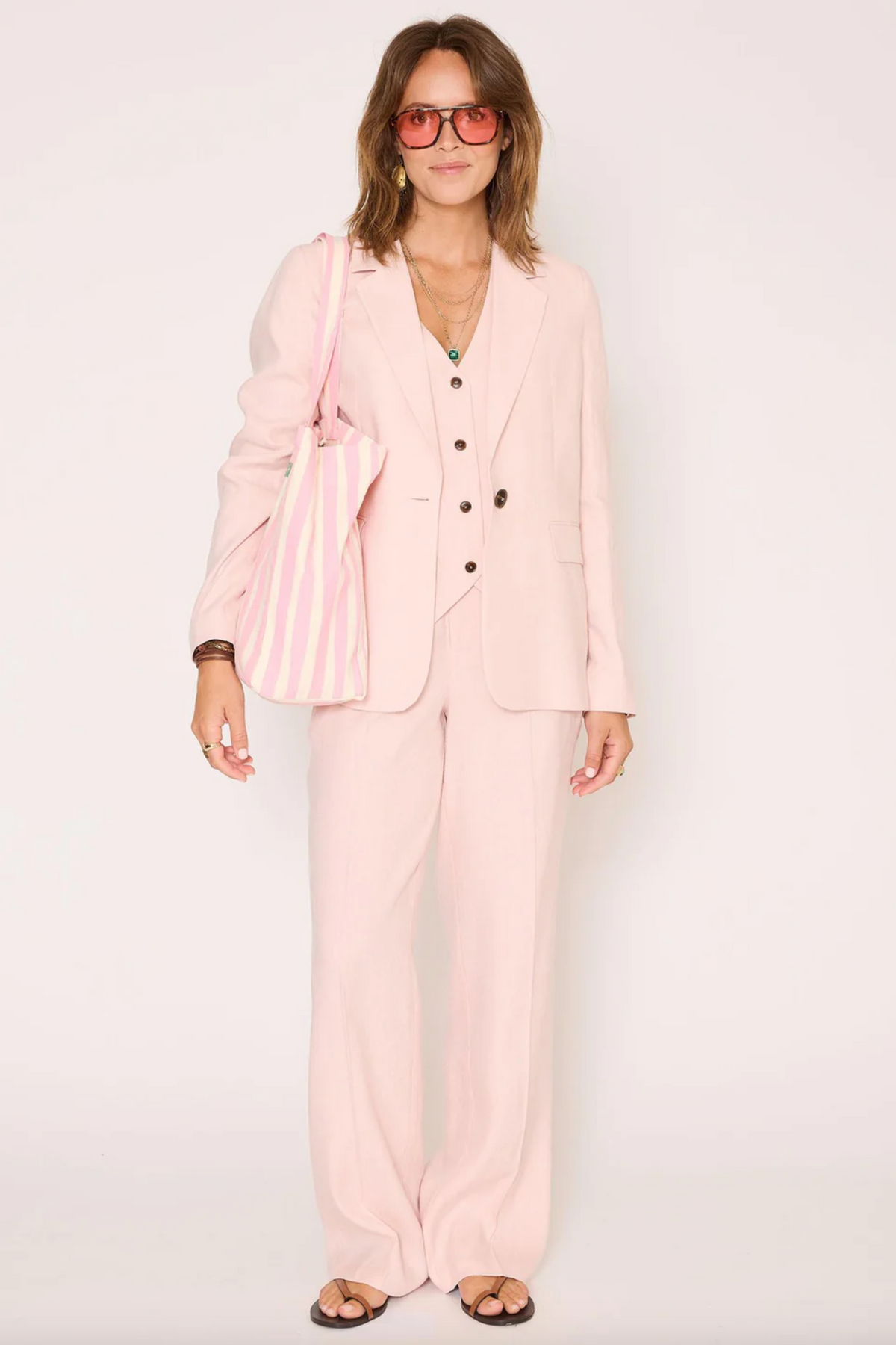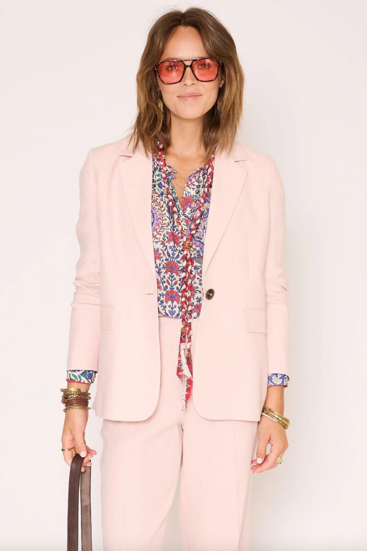 Elegant and structured, the Vibia jacket offers a chic and modern look. Its straight, slightly fitted cut naturally flatters the figure, while its refined fabric drapes beautifully. Easy to style, it can be worn as a complete outfit or with jeans for a more relaxed look.