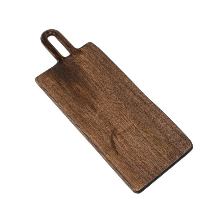 The Driftwood Chopping Board is made of sustainable mango wood, its instantly recognizable striated grain adding so much character. Mango trees are grown for their fruit, but once production declines the trees are cut down and new ones planted. The discarded wood is then used to make pieces like these and gives farmers a second income. This piece features an off-centre carved handle giving it a unique look and feel. It works beautifully as a serving platter for charcuterie, breads, and other culinary favourites. Food Safe; Hand Wash.