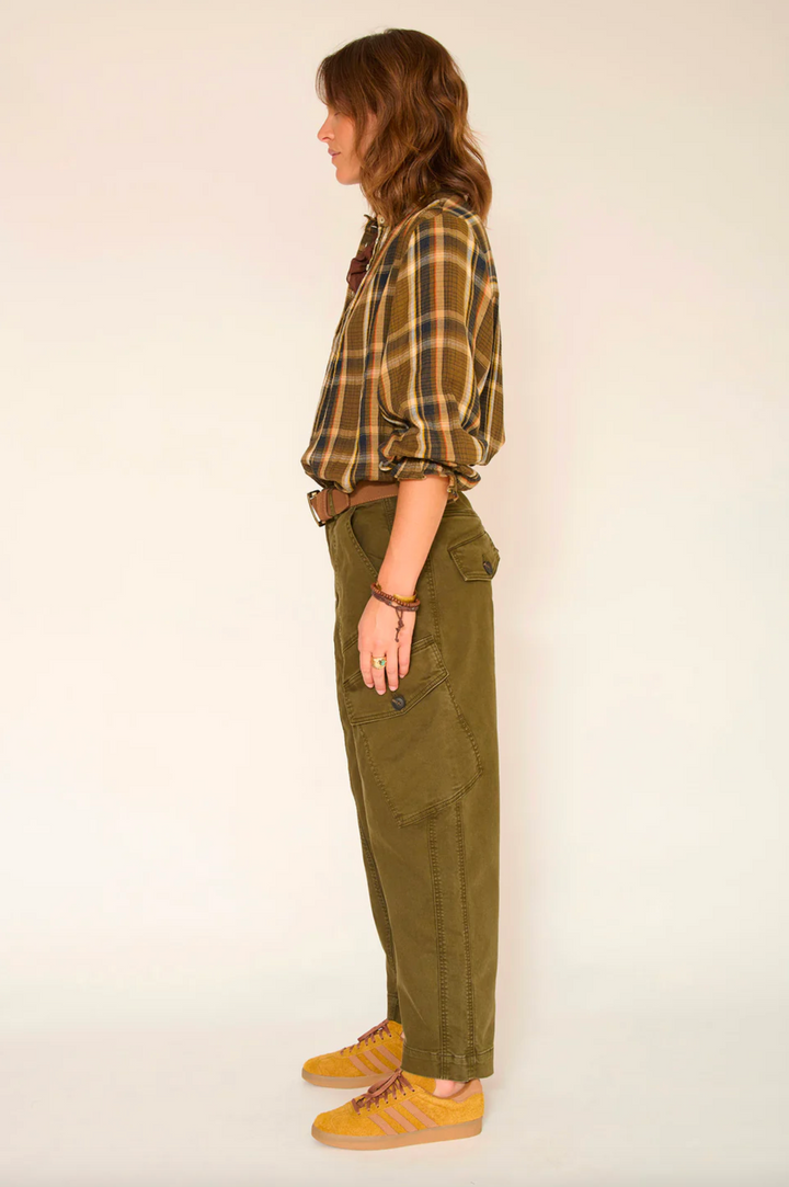 The PAROS MISSOURI KAKI velvet pants are a garment that combines elegance and comfort, ideal for a look that is both casual and polished. Their khaki colour brings a touch of modernity and sophistication to your wardrobe.