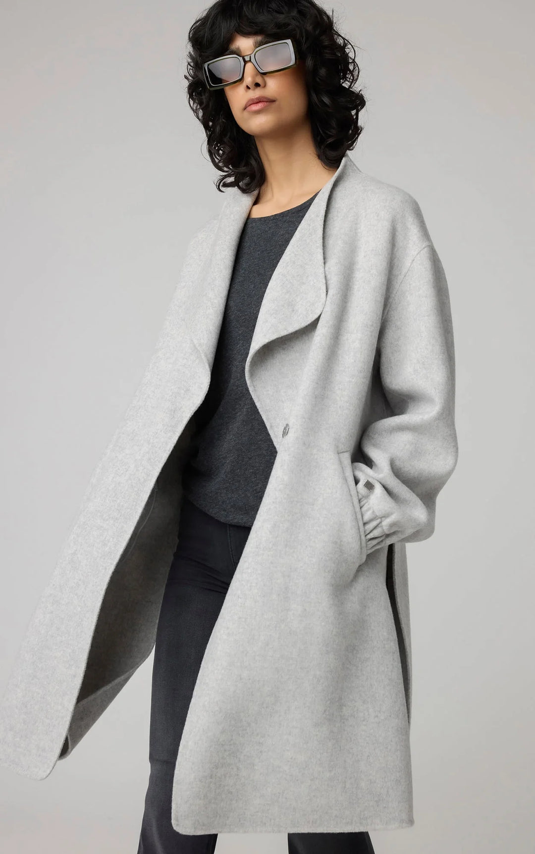 The SUZIE by SOIA & KYO puts a slightly modern twist on the classic double-breasted wool coat. Made from luxurious double-face wool, it’s embellished with a lapel collar at the front and a martingale belt at the back. Side vents promise more movement while elasticized cuffs keep more of the cold out.
