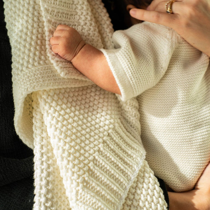 Snuggle with your little one in comfort with the Nell Knit Baby Blanket. Offering breathable warmth and a super-soft feel, this cotton knit features classic edging and neutral coloring, making it effortlessly stylish in any home. Perfect for cuddling, stroller outings, or crib time, it ensures comfort for both you and your little one.