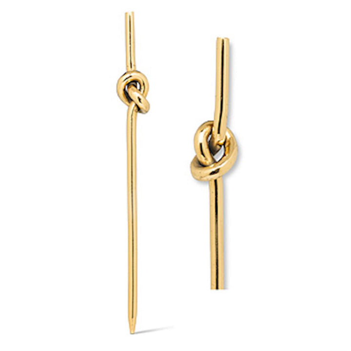Introducing our Gold Knot Cocktail Pick. Perfect for adding a touch of sophistication to your drinks, this elegant pick features a beautifully crafted knot design at the top. Durable and stylish, it's ideal for garnishing cocktails or serving appetizers, making it a must-have accessory for any entertaining occasion. Handcrafted in India. Available in gold or silver finish