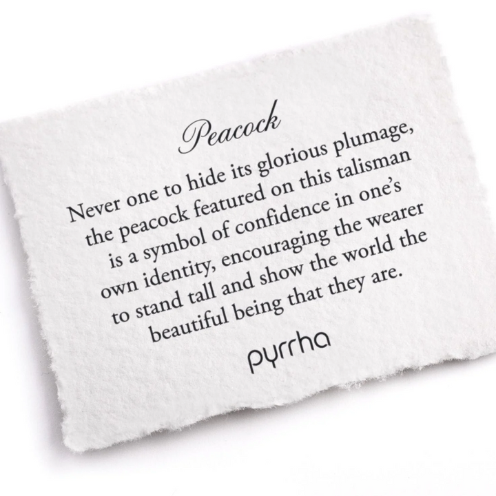 Never one to hide its glorious plumage, the peacock featured on this talisman is a symbol of confidence in one’s own identity, encouraging the wearer to stand tall and show the world the beautiful being that they are.
